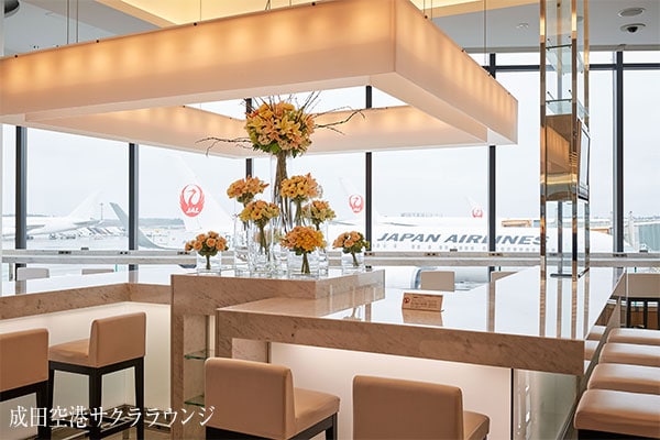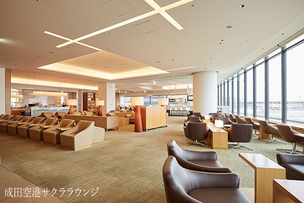 ご出発までのひとときを空港ラウンジ「サクララウンジ」でおくつろぎください。軽食、アルコール類、ソフトドリンクなどをご用意しています。一部空港のラウンジではご搭乗前のリフレッシュに、シャワーブースを完備しています。