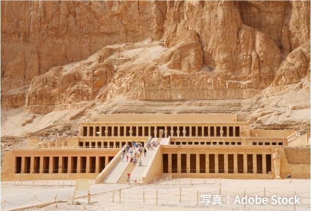エジプト初の女王ハトシェプストが眠る美しい葬祭殿。西岸は「死者の都」とされ、葬祭殿の他王家の谷など、死を象徴するものが造られました。