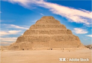 サッカラにある、世界最古ともいわれるジョセル王の階段ピラミッド。6段の階段状になっており、高さは約60mにもなります。