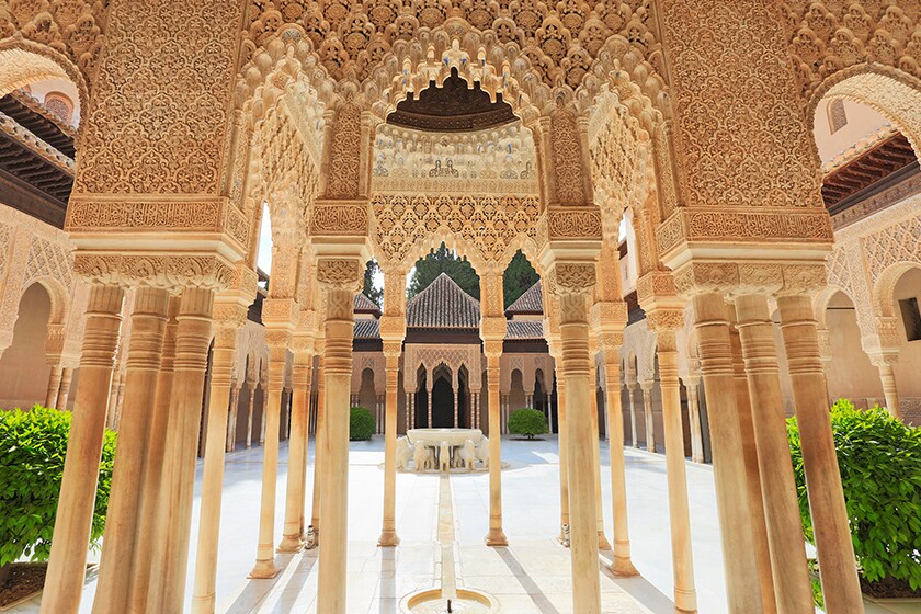 世界遺産 アルハンブラ宮殿観光〔入場〕(イスラム時代の美しいアルハンブラ宮殿とヘネラリフェ庭園をご見学します)。
