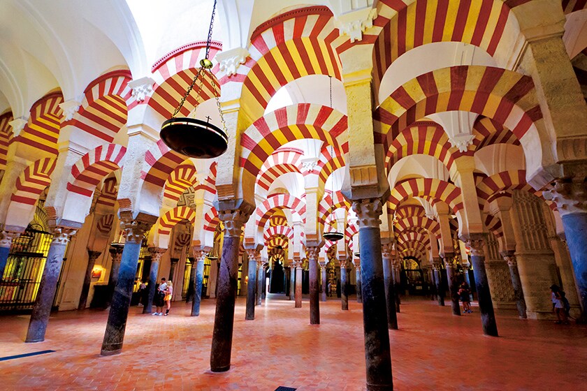 イスラム王朝時代にコルドバのモスクとして建てられたメスキータ。内部には2層の馬蹄形アーチが林立し、幻想的な雰囲気です。