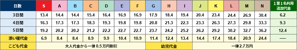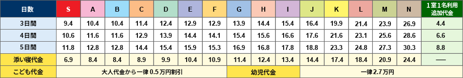お申し込みは旅行代金表下のご希望の日数の赤いボタンからお進みください。