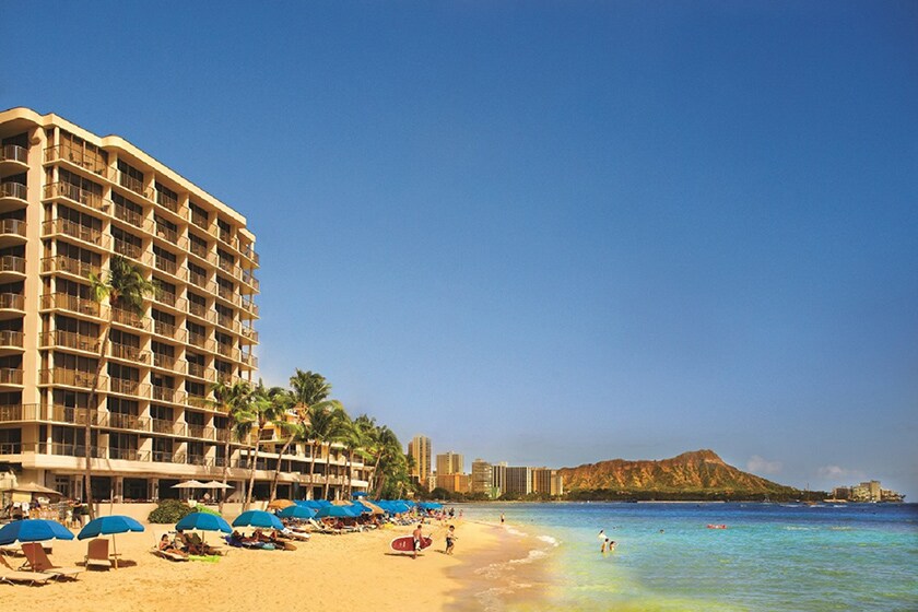 ワイキキの中心に建ち、観光に好立地なエレガントホテル。眼前に広がるワイキキ・ビーチやダイヤモンドヘッドなどの絶景を満喫でき、日本語サポートも充実!