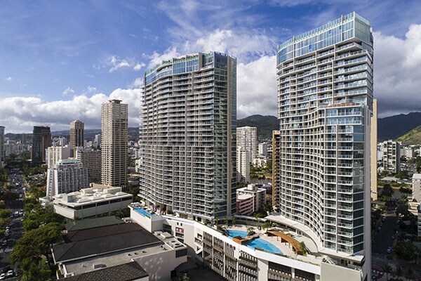 ワイキキビーチに臨む高級ツインタワーホテル。広々としたスタイリッシュな客室が人気です。全室に「ウォシュレット」(*1)を完備しており、日本人に嬉しい機能やアメニティが充実しています。ジャルパックでは滞在中ホテル内ラウンジがお楽しみいただける眺めにこだわった高層階のお部屋もご用意。