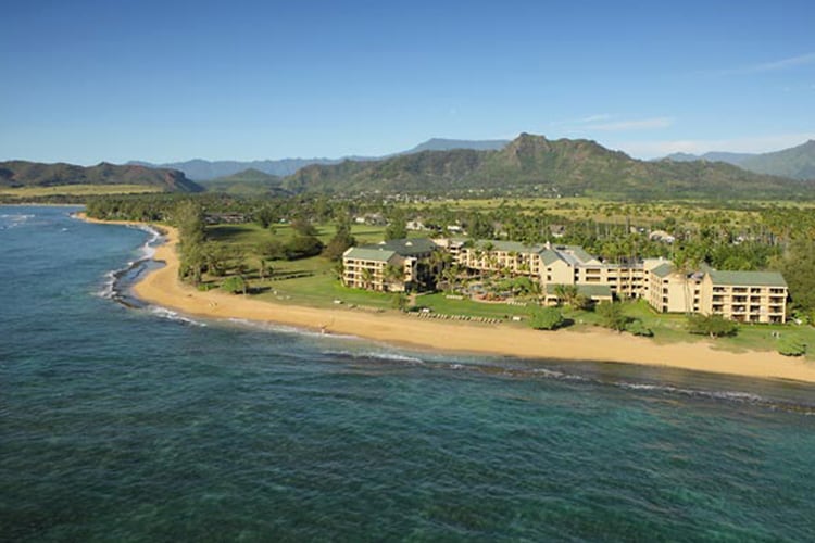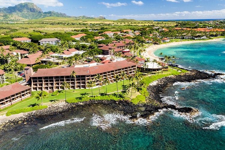 陽光に恵まれた南海岸ポイプにたつリゾート。白壁に緑の屋根を配した外観、色鮮やかな庭園が可憐な雰囲気です。