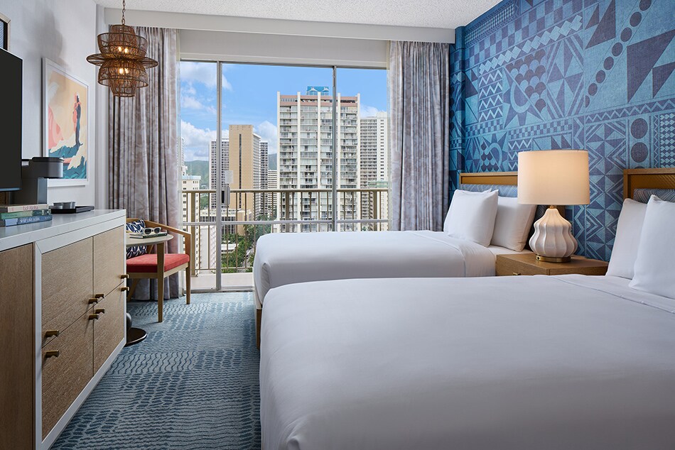 2021年春に全客室の改装工事が完了した、ハワイアンデラックスのビーチフロントリゾート。館内には歴史的文化財やハワイのローカルアーティストの数々の作品が展示され、ハワイらしさを存分に感じられます。ボヤージュと海をテーマにしたロビー(ハーブ・カネ・ラウンジ)は開放的かつモダンな雰囲気が特徴です。館内ではフラレッスンや、ウクレレレッスンなどの体験型アクティビティも充実しているのも魅力の一つ。ワイキキ・ビーチ・ウォークに隣接し、館内にはABCストアやスターバックスコーヒーもあり、ショッピングにもお食事にも大変便利なホテルです。