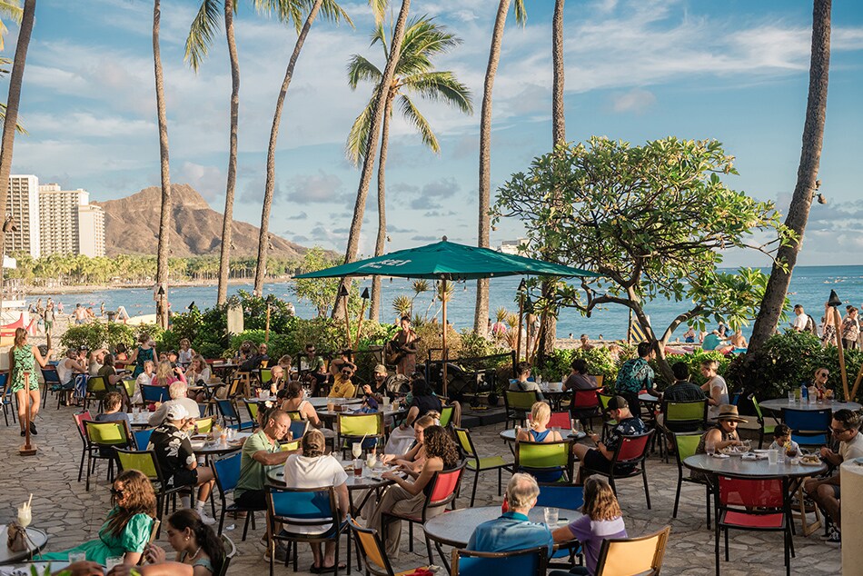 島の食材を生かした創作料理を提供し、地元の方にも愛される人気レストラン。ワイキキビーチを眺めながら朝食から夕食まで、終日ご利用いただけます。