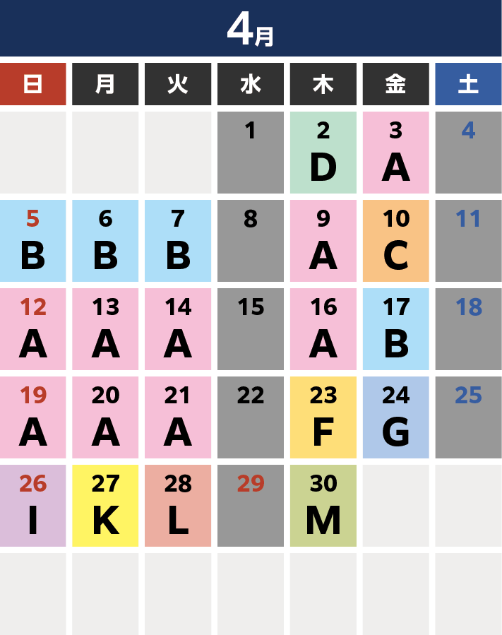 4月24日~4月27日、 7月23日~8月1日、 8月13日~16日出発 |