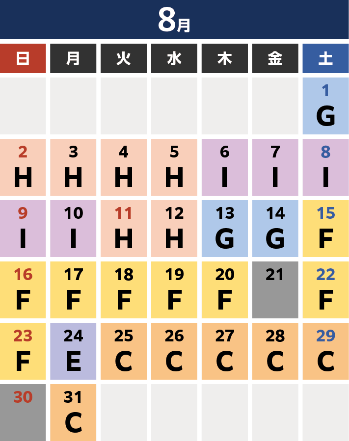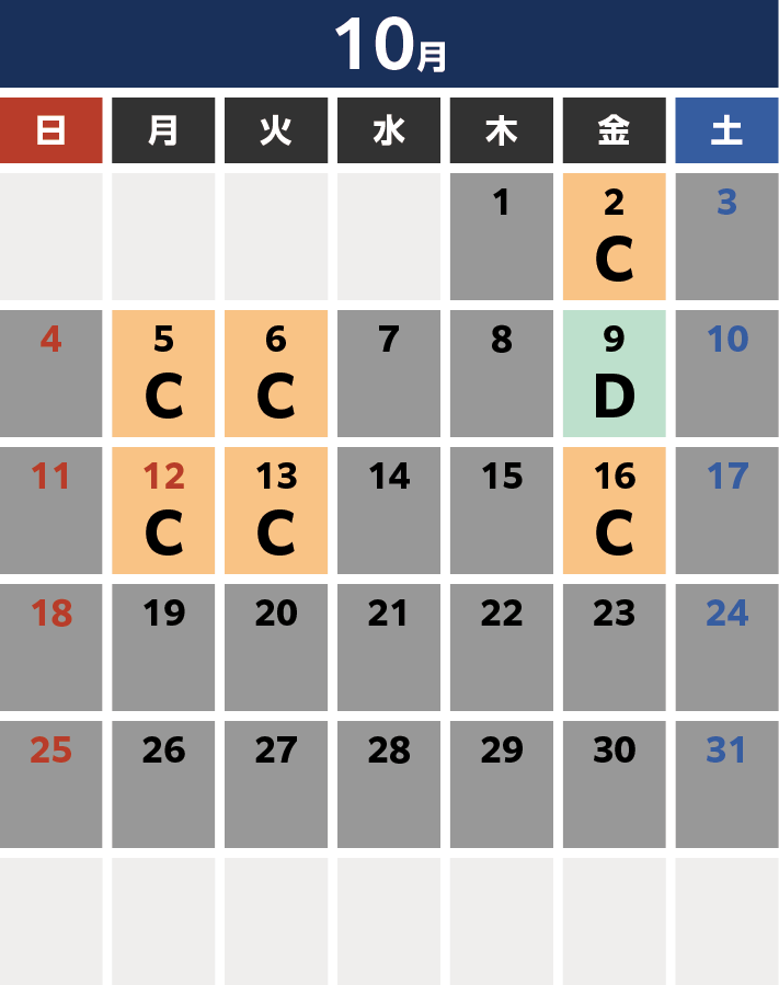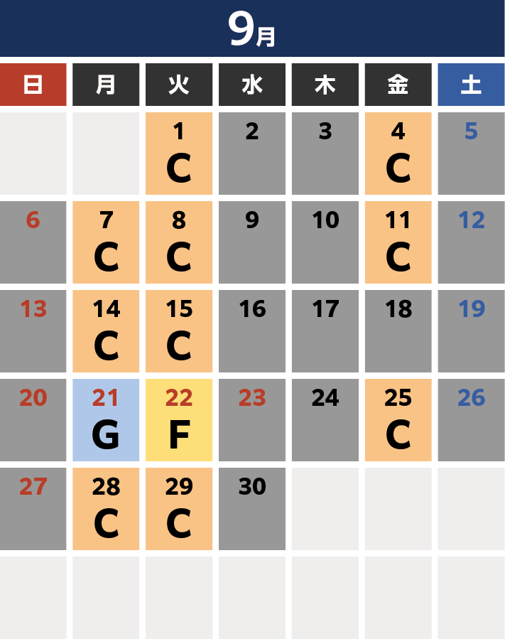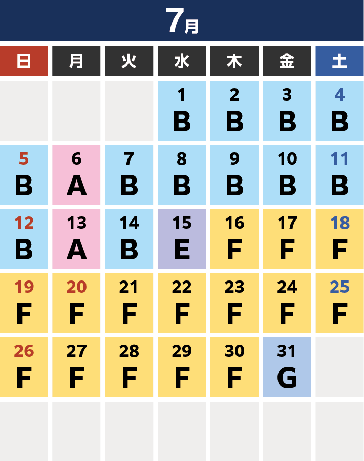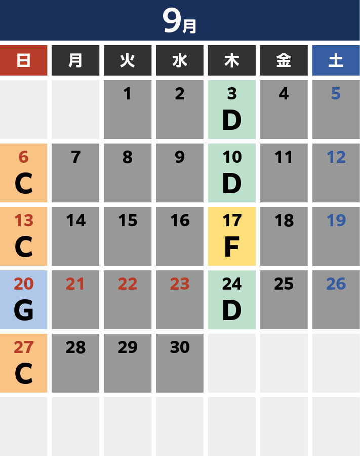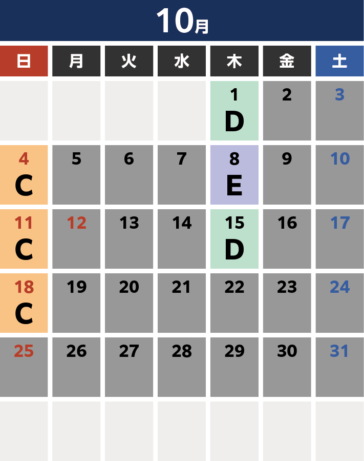 - カレンダーで代金区分を確認し、各コースの旅行代金をご覧ください。