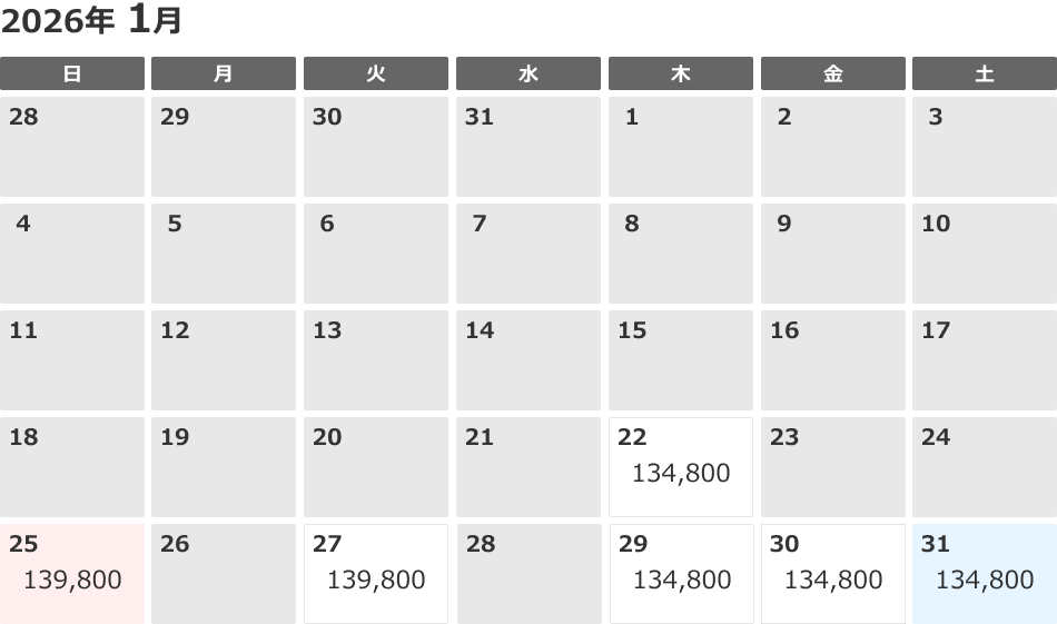 - 出発日 2025年11月22日~2026年4月23日の毎日