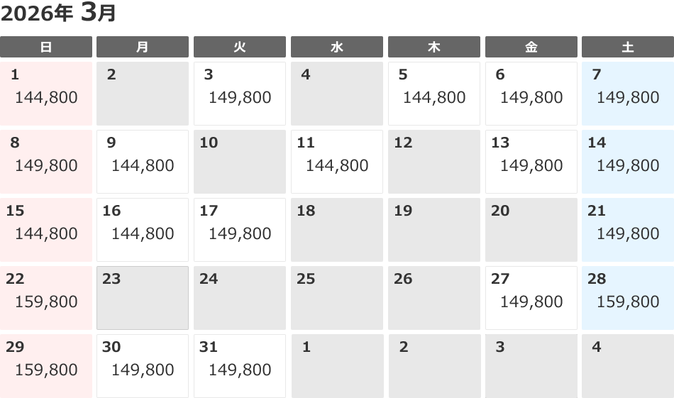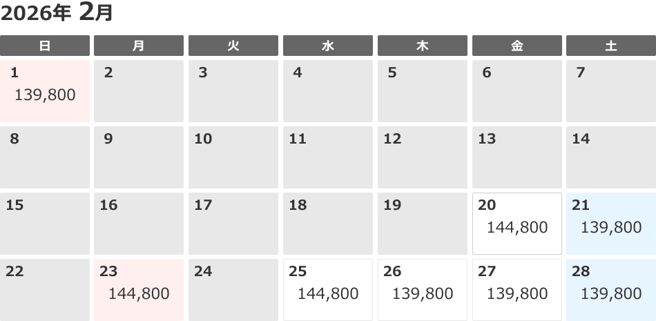 - ご出発日の7日前までにお申し込みください。ただし、販売は2026年2月27日 18:00にて終了します。