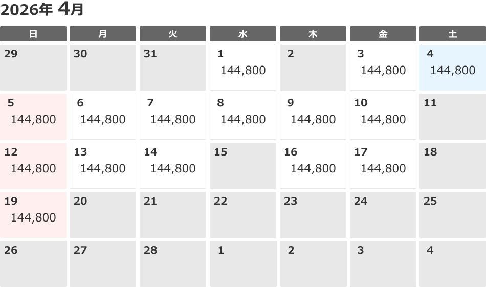 - 1室3名利用割引代金:割引なし