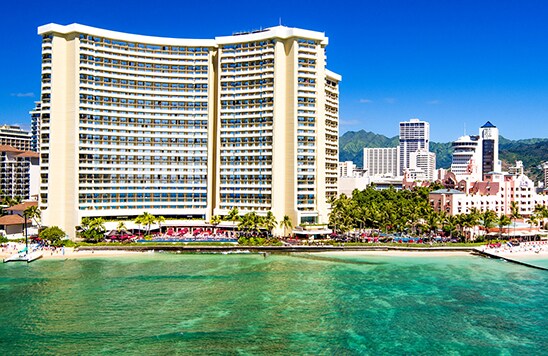 ワイキキの中心に建ち、観光に好立地なリゾートホテル。眼前に広がるワイキキ・ビーチやダイヤモンドヘッドなどの絶景を満喫でき、日本語サポートも充実!ホテル内にJALPAKアロハステーションもあるので安心してお過ごしいただけます。