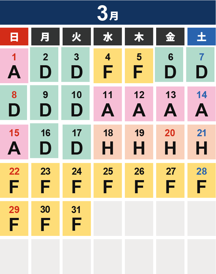 フライトパターンによって旅行代金が異なります。旅行代金区分カレンダー・代金表をご確認ください。