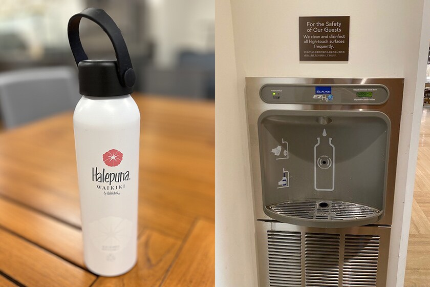 プラスチックごみの削減のため、ペットボトルのミネラルウォーターの提供から、ウォーターサーバーの利用に。ホテルによっては、オシャレなボトルのプレゼントも。