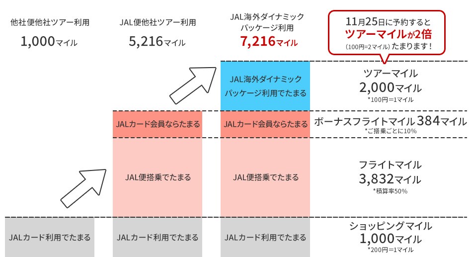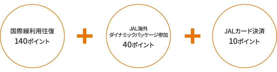 | 国際線利用往復 * | JAL海外ダイナミックパッケージ参加 | JALカード決済 | 合計 | |