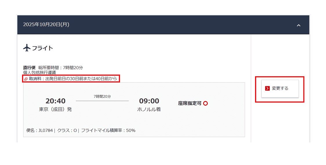 予約時、フライト選択の際に取消料発生時期をご確認いただけます。