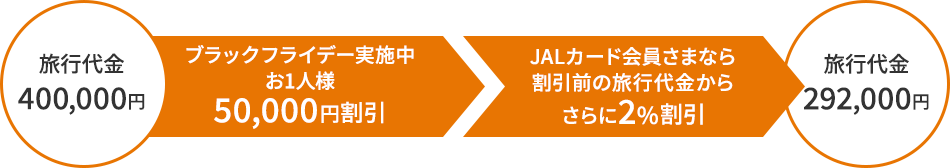 JALカード会員さまなら、JAL海外ダイナミックパッケージが2%割引!期間限定のブラックフライデーと併用可能です。