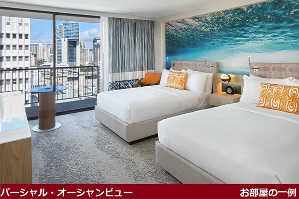 ワイキキの中心地に位置し、ショッピングにもビーチへもアクセス抜群!客室のベッド後ろ一面に広がる海中写真が、まるで海の中にいるような空間を作り出しています。SNS映えすること間違いなし!