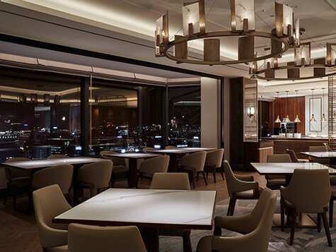 お部屋は全室スイートタイプで広々としておりバルコニー付きです。タワークラブラウンジは52階に位置し、朝食やライトランチをお召し上がりいただけます。また、アルコール飲料やソフトドリンクもお楽しみいただけます。