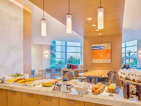 カラカウア通りに位置するスタイリッシュなラグジュアリーホテル。クラブラウンジでは、朝食時に自分の好みのアサイーボウルを作ることができたり、夕方からはクラフトビールやシェフが目の前で作るパスタなど、こだわりのサービスをご用意しています。