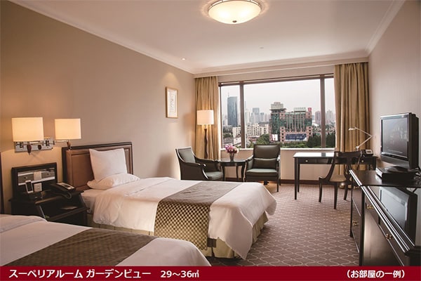 上海の中心地・淮海中路に位置する日系ホテル。観光やショッピングにも便利。壮大な庭園は、28,000平方メートルにおよぶ広さを誇ります。