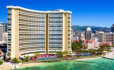 ワイキキビーチを臨むツインタワーホテル。全客室にプライベートバルコニーを完備し、ハワイの景色を眺めながらお寛ぎいただけます。人気のクラブラウンジ利用付きプランは早めのご予約を!