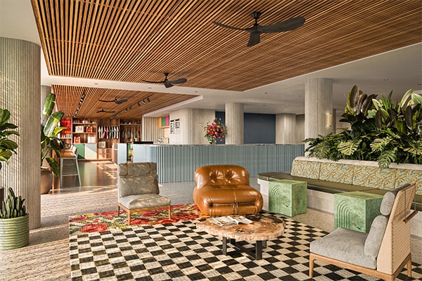 ワイキキの中心部にあるホテル館内はモダンなハワイらしい雰囲気が魅力のホテル。ショッピングにも便利で、ワイキキビーチにも徒歩5分の好立地。