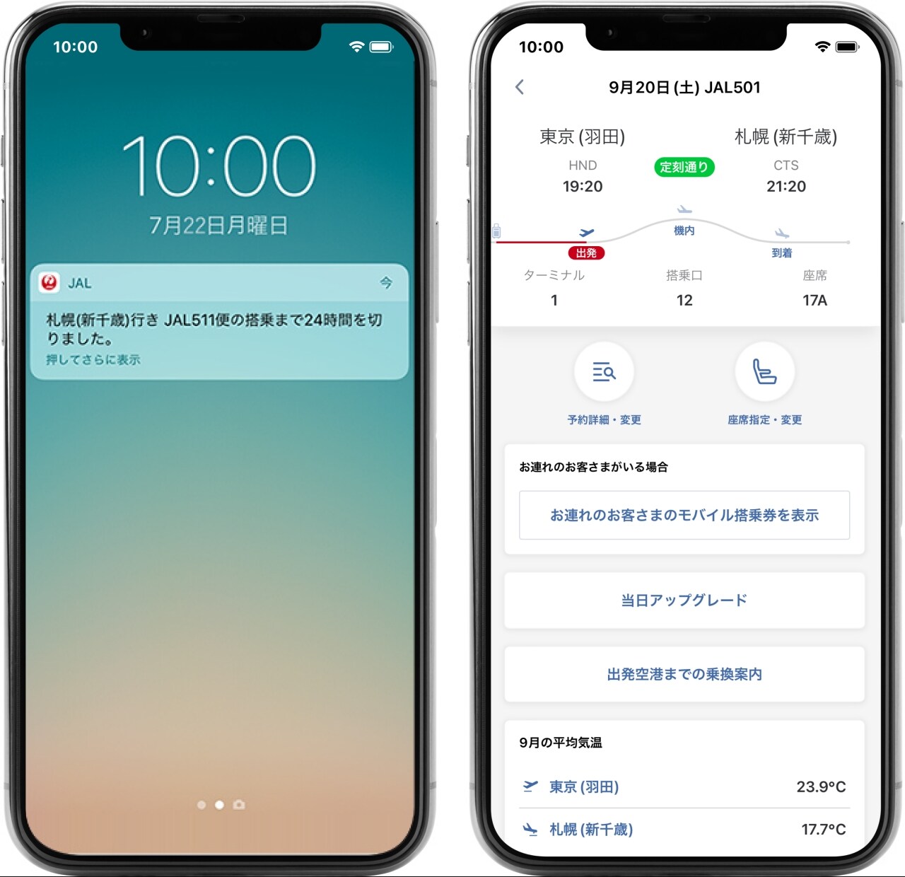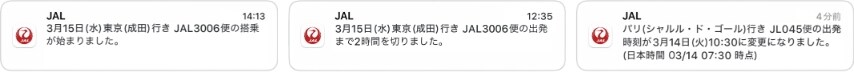 チェックイン締切のリマインドや搭乗開始など搭乗に関する便利な通知、また遅延や欠航など最新の運航情報をお知らせ!