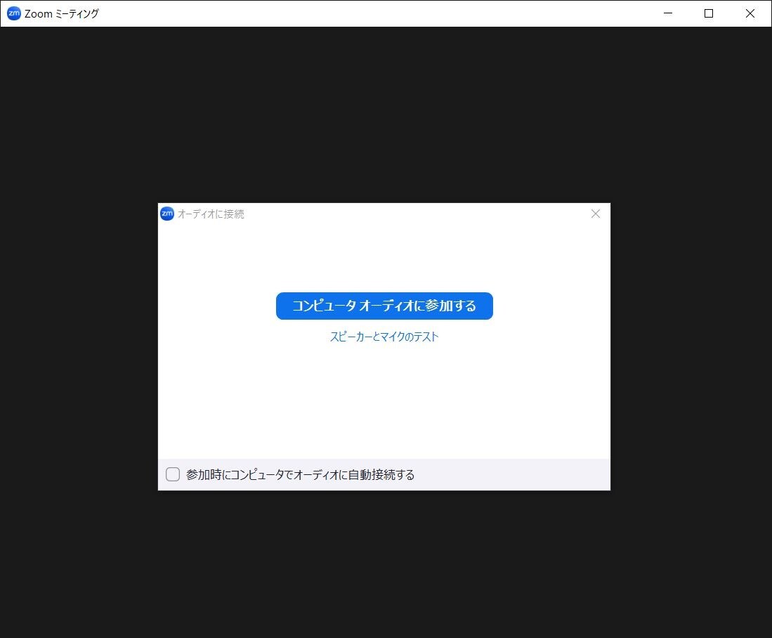 ウェビナーに入ると以下のような画面になりますので、「コンピューターオーディオに参加する」をクリックしてご参加ください。