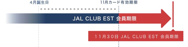 JAL CLUB EST会員期限は本会員が30歳をむかえた後の最初のカード有効期限月の末日までです。