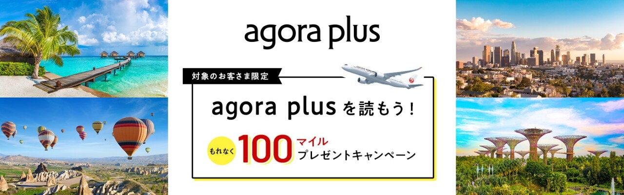 期間中に1回以上agora plusを閲覧し、MyJALCARDからキャンペーン参加登録をした方へ、もれなく100マイルをプレゼント。