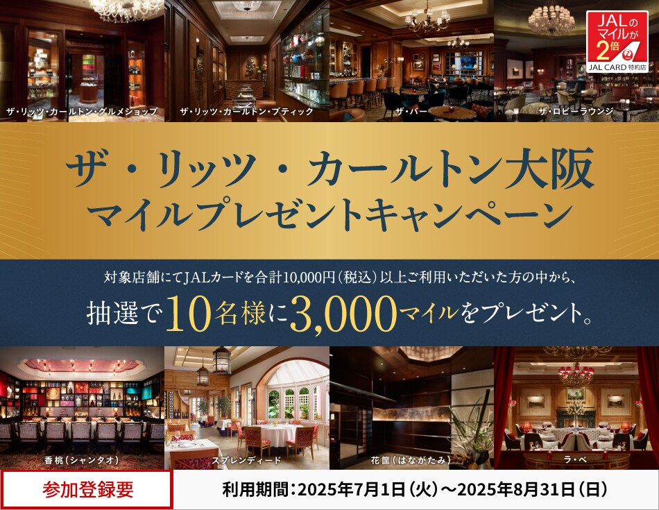 対象店舗にてJALカードを合計10,000円(税込)以上ご利用いただいた方の中から、抽選でマイルをプレゼント。