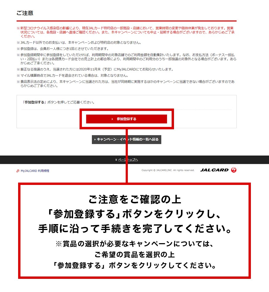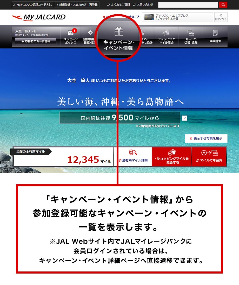 「MyJALCARD」にログインして参加登録のお手続きを行ってください。