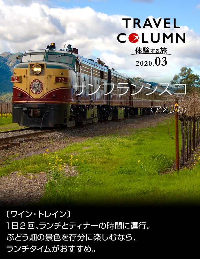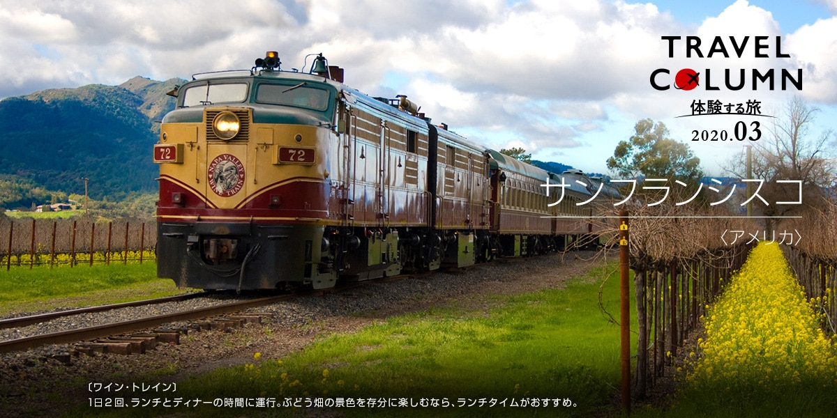 ナパ・ヴァレーへ行くには、サンフランシスコから車で約1時間。ワイン・トレインの乗車に加えて、個性豊かなワイナリーの見学や試飲なども体験できる、サンフランシスコ発のツアーもたくさん用意されている。2020年3月29日からJAL国際線では、従来の東京(羽田)-サンフランシスコ線に加えて、東京(成田)-サンフランシスコ線の運航が開始される。ますます行きやすくなったサンフランシスコで、ワインとグルメ、そして列車の旅を楽しみたい。
