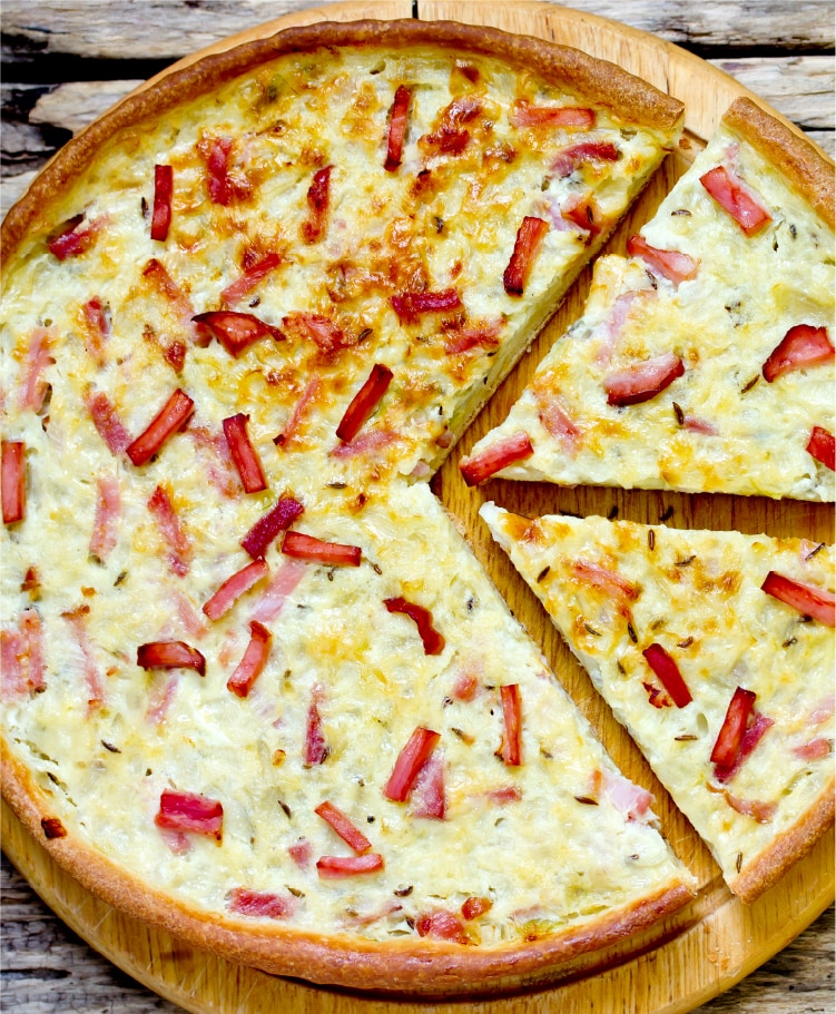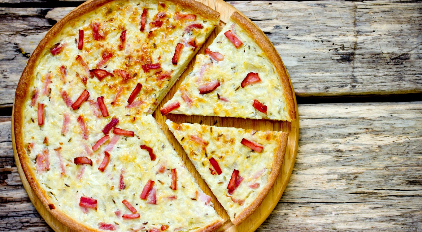 秋の味覚としてドイツで古くから愛されている料理がある。「玉ねぎケーキ」といわれるツヴィーベルクーヘンだ。塩味を効かせたキッシュのような料理で、驚くほどたっぷりの玉ねぎを使う。これがおいしさのヒミツ。じっくり時間をかけて玉ねぎを炒め、甘みとうまみを引き出していく。そこにベーコンやサワークリームを加え、パン生地の上に流し込む。オーブンでサックリと香ばしく焼き上げたら完成。玉ねぎのおいしさをギュッと凝縮した、ドイツの伝統料理だ。