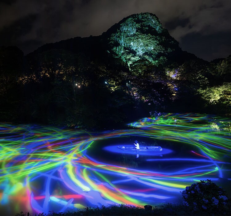 チームラボによる、御船山楽園(九州・武雄温泉)の夜の森のミュージアム「チームラボ かみさまがすまう森 - ジーシー」は、今年で10年目を迎え、2024年11月4日(月)まで開催中です。御船山楽園は、300万年続く自然に囲まれた、50万平米にも及ぶ敷地に創られた大庭園で、毎年夏から秋にかけてだけ見られる本展は、自然が自然のままアートになる広大な展覧会です。2021年には、CNN「行くべき世界の屋外アート展」に選ばれました。