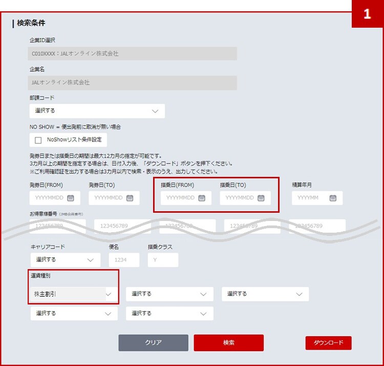 「企業カスタマイズ設定」をクリック後、「運賃」カテゴリ内の「株主割引券ご利用方法」をご参照ください。