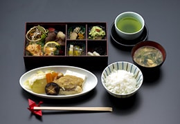 国際線のビジネスクラス(路線限定*)にて、岩手県の郷土料理をイメージした「岩手御膳」をご提供いたします。「岩手鱈汁」や「岩手県産黒毛和牛朴葉味噌焼」など、岩手県の郷土料理の美味を追求しました。