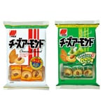 パリッとした食感の醤油味のうす焼せんべいに、まろやかなチーズと香ばしいアーモンドをのせました。3つの味わいの絶妙なハーモニーが愛され続けて来年30周年を迎えます。おなじみの味わいと、ピリッと刺激的なわさび味、どちらも個性的なおいしさです。