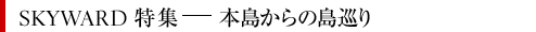国際線・国内線の機内誌「SKYWARD」では、「本島からの島巡り」と題し、古宇利(こうり)島、屋我地(やがじ)島、伊江(いえ)島、浜比嘉(はまひが)島を訪れ、島々の豊かな個性や自然を慈しむ逞しい営みなど、沖縄の離島の魅力をご紹介します。