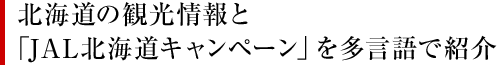 ご好評をいただいております「JAL北海道キャンペーン」を今年度も海外地区ホームページを通じて、海外のお客さまにも多言語(英語、韓国語、中国語繁体字、中国語簡体字)で発信しております。