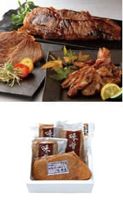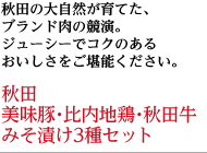 秋田県で大切に育てられた「美味豚」「比内地鶏」「秋田牛サーロイン」を、秋田で140年続く浅利佐助商店の秋田味噌をベースにした特製のたれに漬け込みました。ごはんにもお酒のお供にもよく合う、芳醇な香りの風味豊かな逸品です。自然豊かな恵まれた環境で育った、日本を代表するブランド肉3種が一度に味わえる、贅沢なJALオリジナルセットでお届けします。