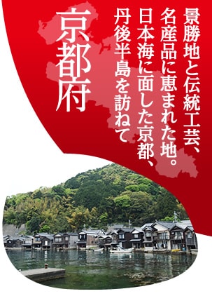 日本を代表する古都であり、国内外の旅行客に高い人気を誇る京都。京都観光といえば、いわゆる京都市内の寺社巡りを連想しがちですが、南北に長い面積を有する京都府には、古都以外の魅力もいろいろ。そのひとつが、京都最北部で日本海に面する丹後半島です。日本三景のひとつとして名高い天橋立、かつて軍港の町して栄えたレトロな魅力あふれる舞鶴、伊根湾の詩情漂う舟屋の里など、多彩な表情をもつ見どころに出合えるのが丹後半島の魅力。また、複雑に入り組んだ美しい海岸線と豊かな土壌に恵まれた丹後は、古くから名産品の宝庫でもあります。
