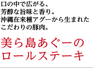 おいしいものに出会うと、誰でも笑顔になれるから。 JALでは、日本各地の“おいしい逸品”を集めた「JALオリジナル日本美味セレクション」をお届けしています。今回ご紹介するのは「沖縄県」から、「美ら島あぐーのロールステーキ&沖繩産豚の煮豚セット」と「ブルーシールアイス詰め合わせ」です。常夏の紀行が育んだ至極の味を、ぜひご堪能ください。