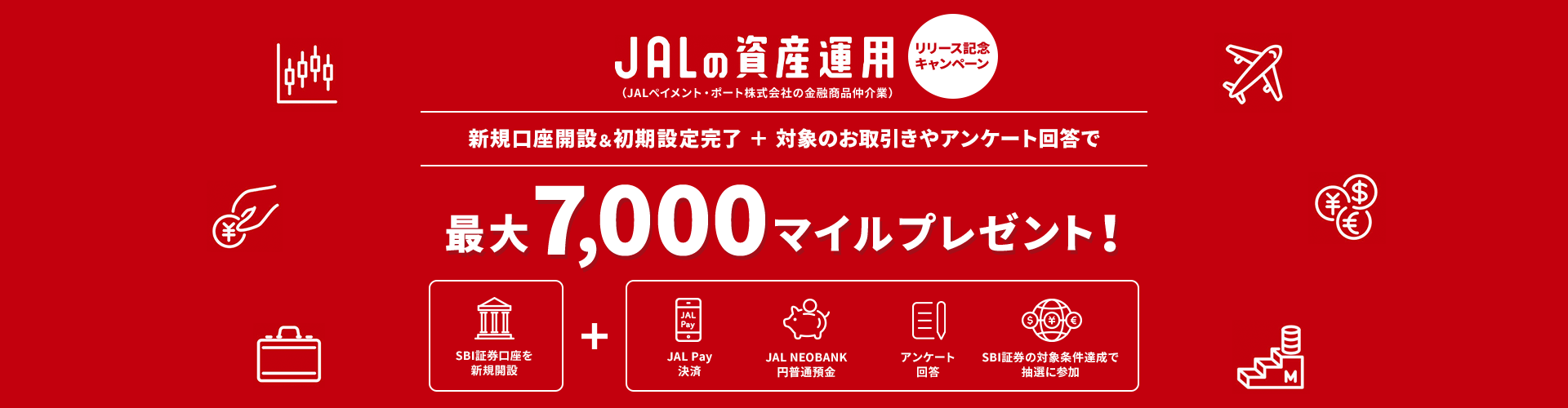 JALペイメント・ポートは住信SBIネット銀行の銀行代理業者として、円普通預金の受入れを内容とする契約締結の媒介(勧誘および受け付け)、ならびに円定期預金、外貨普通預金、外貨定期預金、円仕組預金、外貨仕組預金の受入れを内容とする契約締結の媒介(勧誘)、資金の貸し付けを内容とする契約締結の媒介(貸し付け先は個人消費者、貸し付け金の使途は住宅購入資金または住宅購入資金の借り換え資金、個人消費性資金)(勧誘)、為替取引を内容とする契約の締結の媒介(勧誘)を行います。