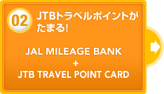 - e JALポイントは、JTBトラベルポイントJMBカードご入会後のご搭乗に対し、通常のフライトマイル積算日から2カ月以内に積算いたします。