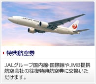 JALグループやJMB提携航空会社の往復特典航空券に交換いただけます。 |