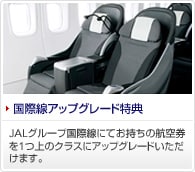 JAL国際線にてお持ちの航空券を1つ上のクラスにアップグレードできます。 |