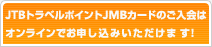 - 既にJALマイレージバンク、JALカードにご入会いただいている方(日本在住の方のみ)も、e JALポイントをためるには「JTBトラベルポイント JMBカード」にお申し込みいただくことが必要です。なお、お得意様番号は現在お持ちのカードと同一のものとなります。お手元にご用意の上、お申し込みください。